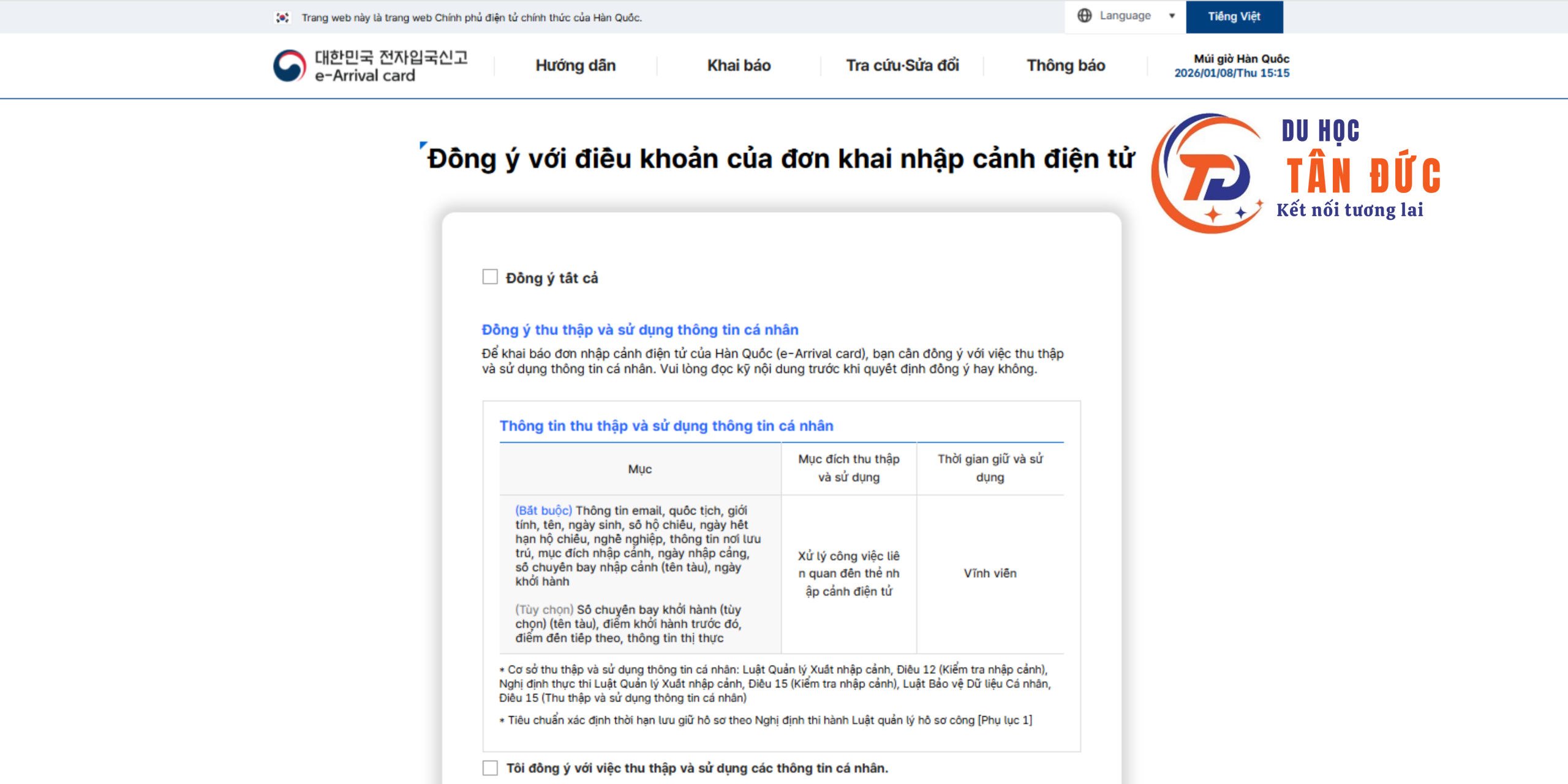 - Đến 31/12/2025: Du khách có thể chọn khai e-Arrival Card online hoặc tờ khai giấy khi đến Hàn Quốc.