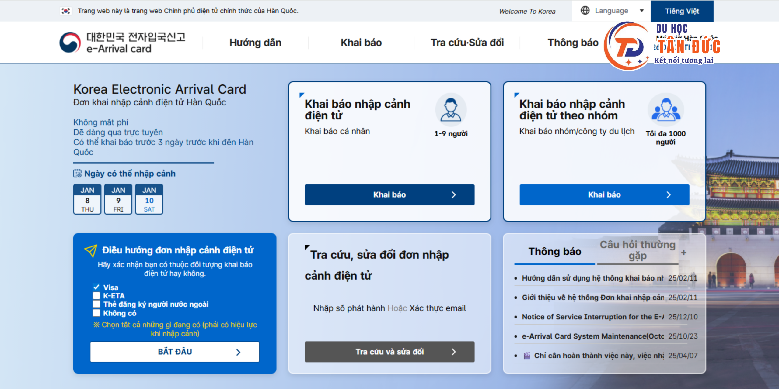- Từ 24/02/2025: Hệ thống khai báo e-Arrival Card bắt đầu triển khai cho tất cả du khách.