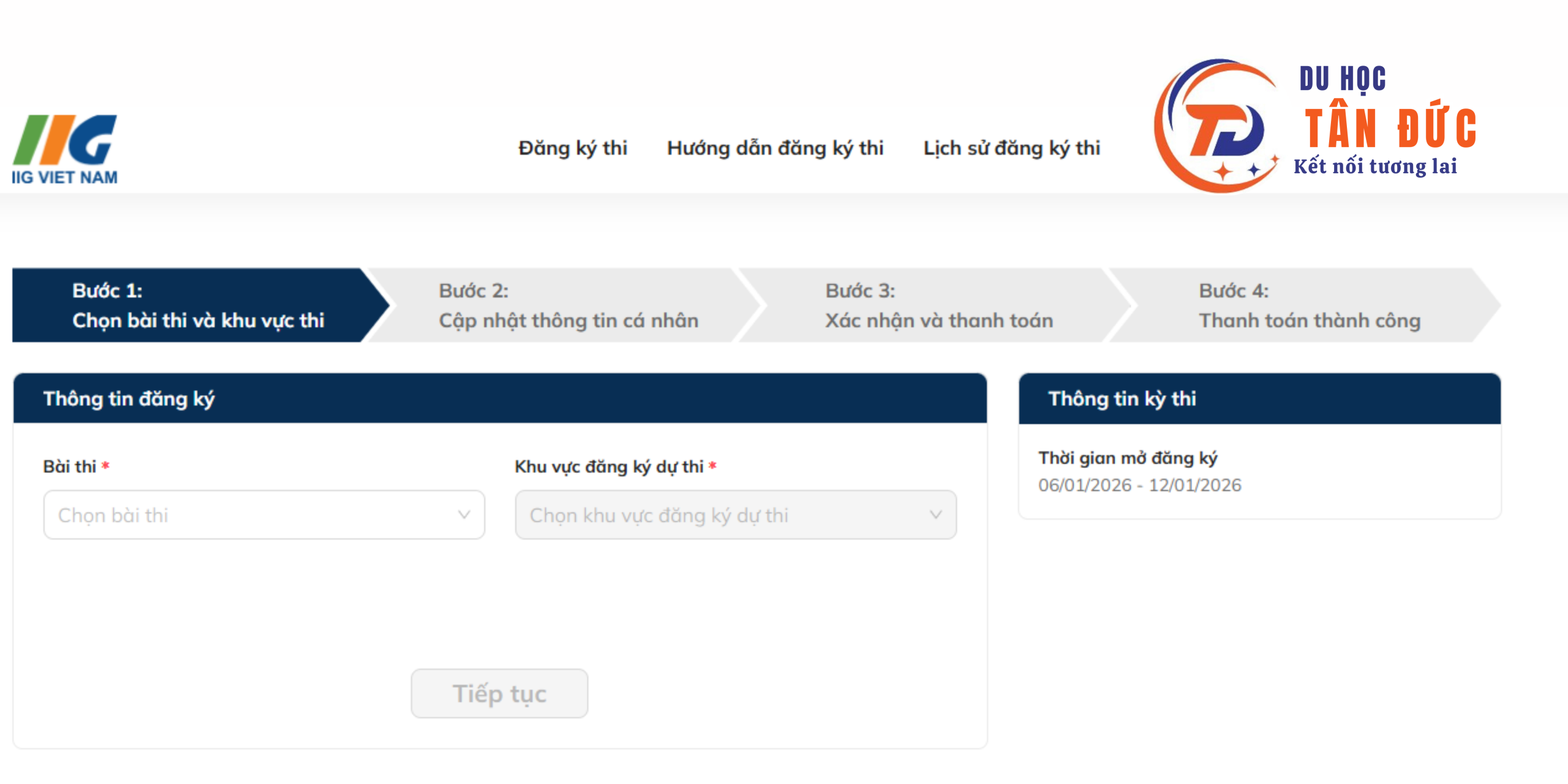 👉 Tân Đức khuyên các bạn nên đăng ký ngay khi cổng mở để giữ suất thi.